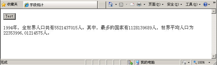 var str="1994年,全世界人口共有"+sum+"人。其中,最多的国家有"+max+"人,世界平均人口为"+average+"人。";