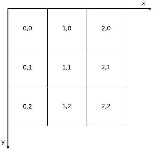 SuperMap iServer 、iExpress支持读取ZXY规范的地图瓦片,可对接 OpenStreetMap 等互联网的瓦地图服务。ZXY规范的地图瓦片规则如下:将地图全幅显示时的图片从左上角开始,往下和往右进行切割,切割的大小默认为 256*256 像素,左上角的格网行号为 0,列号为 0,往下和往右依次递增。如下图所示: