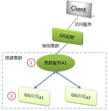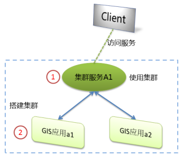 GIS 应用服务器是为客户端直接提供 GIS 服务的服务端,通过使用集群可以提升 GIS 服务的性能和负载量,集群系统将以本机 GIS 应用服务器为出口向客户端提供高性能的服务。