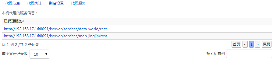 注意:SuperMap iExpress 默认没有代理任何服务,在初始状态下服务列表和服务管理页面是空的,在代理远程服务后,才能看到服务内容。