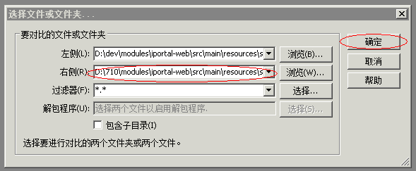 在升级 iPortal 进行代码合并之前建议使用 WinMerge 来对比文件夹,对比增加或减少的文件,同时对已修改的 iPortal 源代码和升级后的 iPortal 源代码进行比较,改动不大可以将修改同步到升级后的 iPortal 源代码中,如果改动很大,不建议升级。