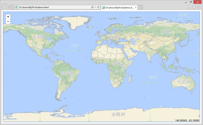 启动 SuperMap iPortal 并运行 demo.html 文件,浏览地图数据。
