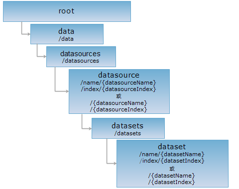 dataset 资源表示一个数据集,通过对 dataset 资源执行 GET 请求可以获得该数据集({datasetName}或{datasetIndex})的描述信息,通过 PUT 和 DELETE 请求还可以修改或删除该数据集,当 dataset 资源不存在时,PUT 请求是创建一个数据集。