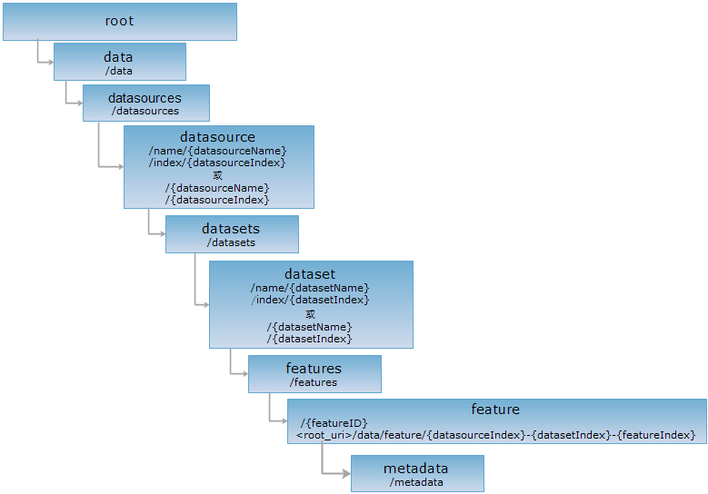 metadata 资源表示地理要素元信息,元信息中含地理要素的创建者、创建时间、上一次编辑者、上一次编辑时间。