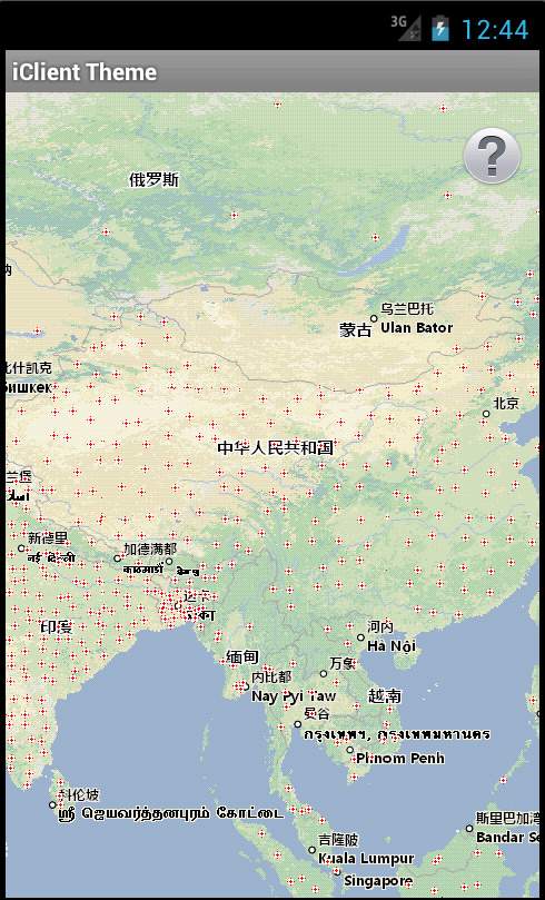 SuperMap iClient for Android提供的专题图模块示范代码位于【SuperMap iClient for Android 产品目录】\samples\iclient-android-theme,包含点密度专题图、等级符号专题图、统计专题图、矩阵标签专题图、分段专题图、单值专题图、栅格分段专题图、栅格单值专题图等功能。同级目录的iclient-android-theme.apk是可直接安装于Android设备的应用程序。运行示范程序后,在弹出的对话框输入可访问的iServer服务地址,确定后,列出功能项:
