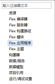2)在右侧列表栏中选择”Flex 应用程序“选项卡:
